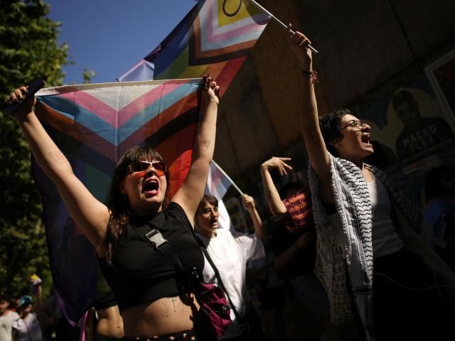 社交媒体上的图片显示,抗议者举着骄傲旗帜,呼吁结束土耳其政客使用的“两极分化”和反lgbtq +语言。